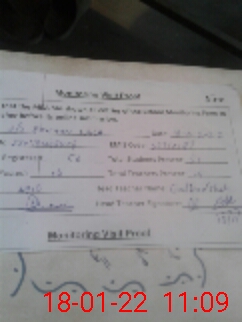 | Monitoring Date: 18-01-2022 | Start Time: 18-01-2022 10:48 AM | End Time: 18-01-2022 11:09 AM | Name of MEA: Ab**** Hu**** | |