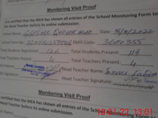 | Attendance Register | Head Teacher | MEA with School | Visit Proof |