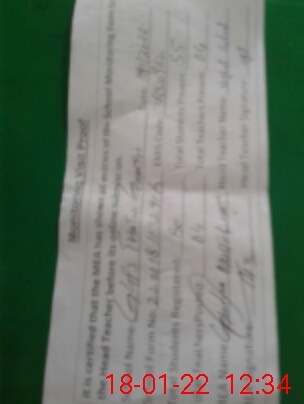 | Total no. of Classrooms: 2 No. of Classrooms Used for Teaching: 2 No. of Classrooms Storing Old Furniture, FTBs, etc: 0Comments if Any: Teachers using students chairs no teachers chairs available also no practice of lnd and no tablet use NO nsb record maintain fresh statement not available |