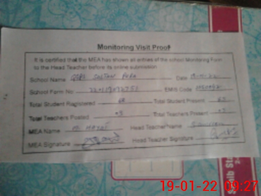 | EMIS Code: 31150042 | Name of School: GGPS SULTAN PURA | |||