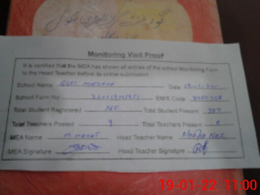| EMIS Code: 31150258 | Name of School: GGHS KHOL MIRZEKA | |||