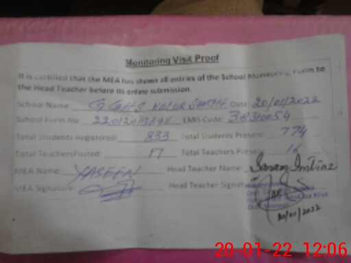 | EMIS Code: 38310054 | Name of School: GGHS KALUR SHAREEF | |||