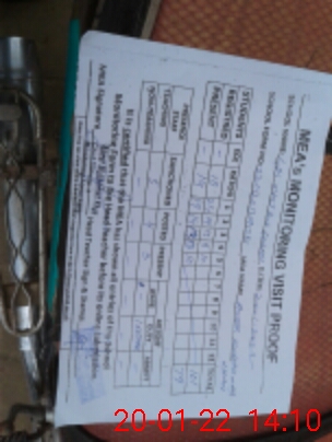 | Monitoring Date: 20-01-2022 | Start Time: 20-01-2022 12:41 PM | End Time: 20-01-2022 02:12 PM | Name of MEA: Am**** Mu**** Kh**** | |
