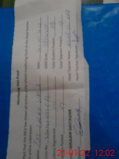 | Attendance Register | Head Teacher | MEA with School | Visit Proof |