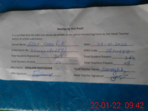 | EMIS Code: 39310552 | Name of School: GGES SHAH PUR | |||
