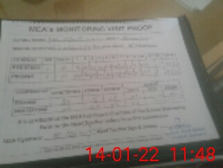 | Attendance Register | Head Teacher | MEA with School | Visit Proof |