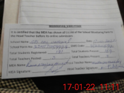 | Attendance Register | Head Teacher | MEA with School | Visit Proof |