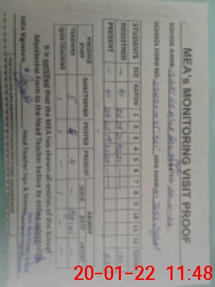 | Attendance Register | Head Teacher | MEA with School | Visit Proof |