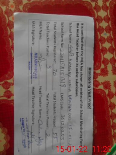 | Certified that this School was Inspected by the Undersigned MEA/DMO Today and the Information Stated Above is as Per Record. | |||||