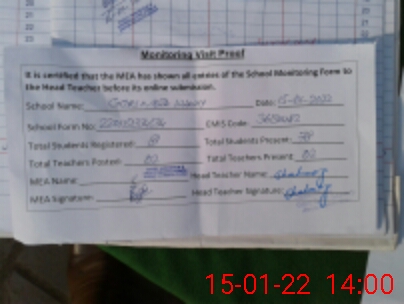 | Attendance Register | Head Teacher | MEA with School | Visit Proof |