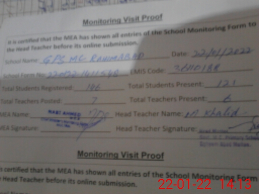 | EMIS Code: 36110188 | Name of School: GPS MC RAHIMABAD MULTAN | |||