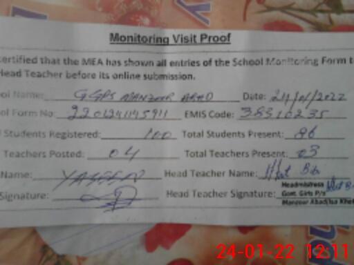 | EMIS Code: 38310235 | Name of School: GGPS MANZOOR ABAD ISA KHEL | |||