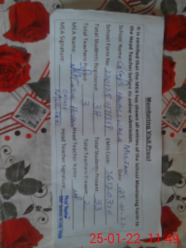 | EMIS Code: 36120310 | Name of School: GGPS HAVALI WALA SHUJABAD | |||