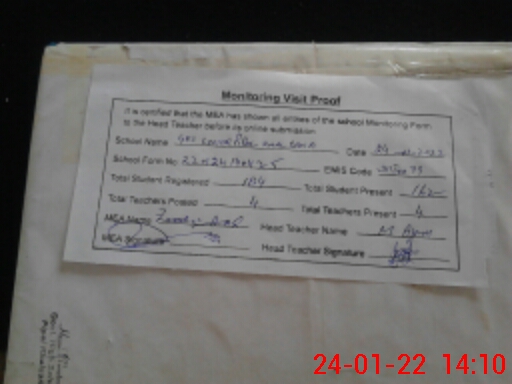 | Attendance Register | Head Teacher | MEA with School | Visit Proof |