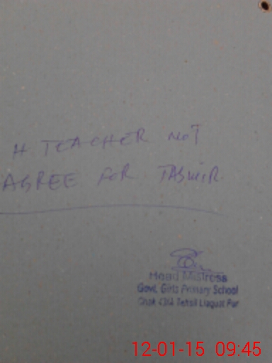 | Name: SI**** SH**** Designation: (School Headmaster's/Headmistress's) PST Phone/Cell Number: 03**** |
