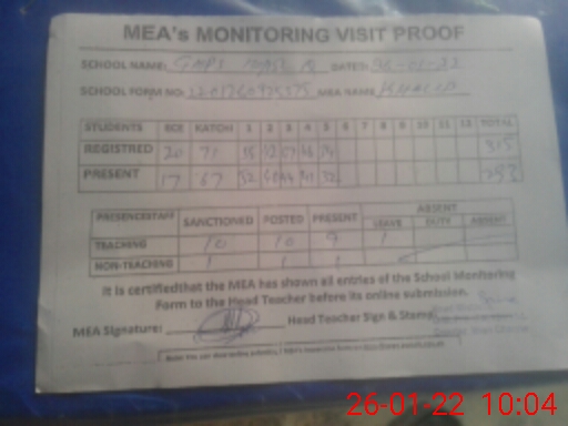 | Certified that this School was Inspected by the Undersigned MEA/DMO Today and the Information Stated Above is as Per Record. | |||||