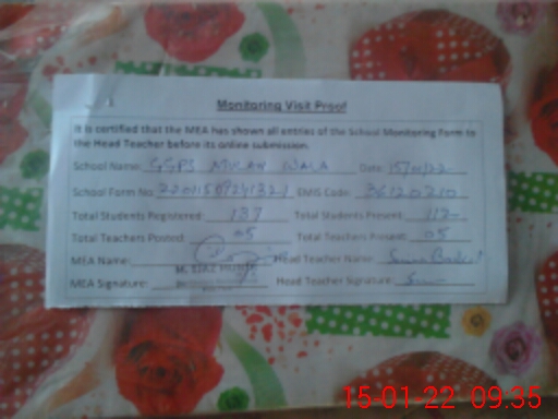 | Attendance Register | Head Teacher | MEA with School | Visit Proof |