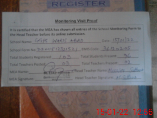 | EMIS Code: 36120205 | Name of School: GGPS WARIS ABAD WARIS ABAD SHUJABAD | |||
