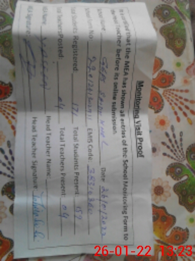 | Certified that this School was Inspected by the Undersigned MEA/DMO Today and the Information Stated Above is as Per Record. | |||||