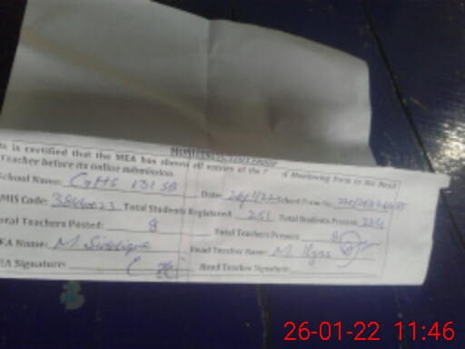 | Certified that this School was Inspected by the Undersigned MEA/DMO Today and the Information Stated Above is as Per Record. | |||||