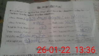 | Monitoring Date: 26-01-2022 | Start Time: 26-01-2022 01:21 PM | End Time: 26-01-2022 01:39 PM | Name of MEA: GH**** MU**** | |