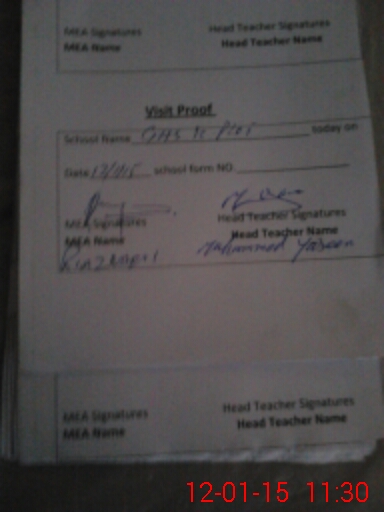 | Attendance Register | Head Teacher | MEA with School | Visit Proof |