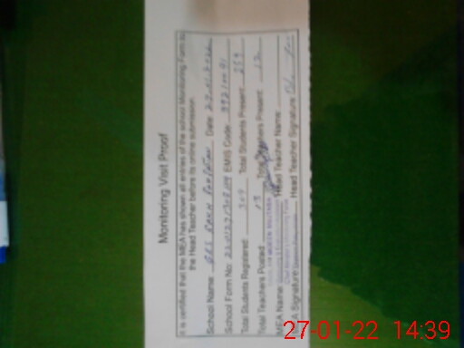| Attendance Register | Head Teacher | MEA with School | Visit Proof |