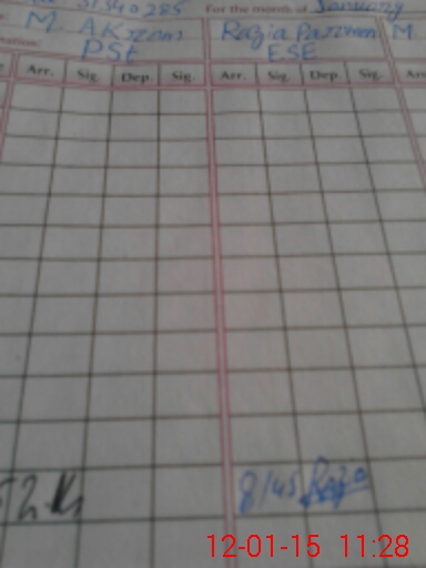 | CNIC | Full Name | Designation | R/C | Absence During Last Calender Month |