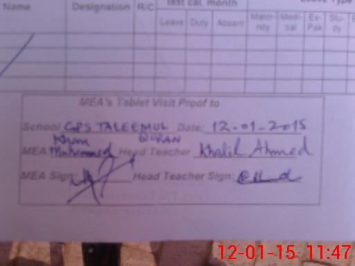 | Attendance Register | Head Teacher | MEA with School | Visit Proof |