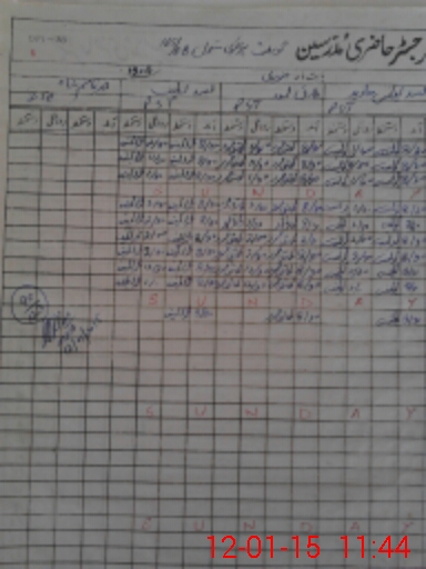 | CNIC | Full Name | Designation | R/C | Absence During Last Calender Month |