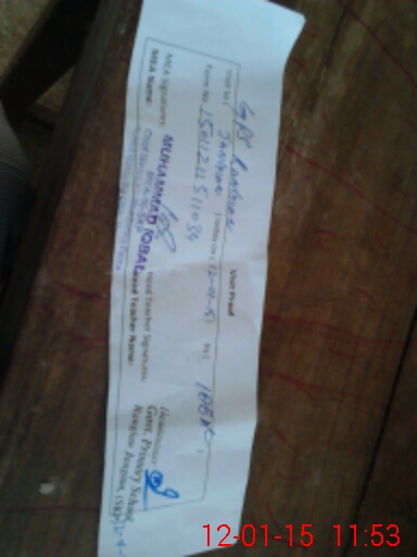 | Total no. of Classrooms: 2 No. of Classrooms Used for Teaching: 2 No. of Classrooms Storing Old Furniture, FTBs, etc: 0Comments if Any: Teachers attendans register at teachers home due to leavs not awailable in school |