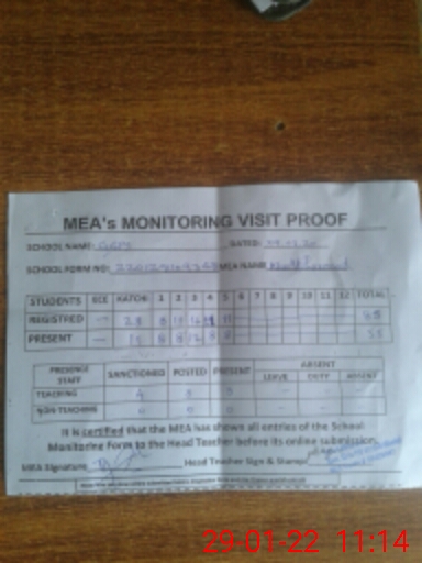 | Certified that this School was Inspected by the Undersigned MEA/DMO Today and the Information Stated Above is as Per Record. | |||||