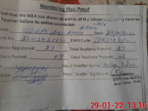 | EMIS Code: 38310350 | Name of School: GGPS HAJI AHMED ARAIN WALA | |||