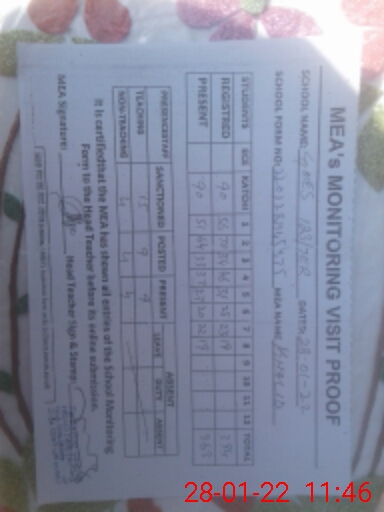 | Attendance Register | Head Teacher | MEA with School | Visit Proof |