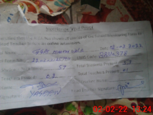 | EMIS Code: 38310378 | Name of School: GGPS MAHARAN WALA | |||