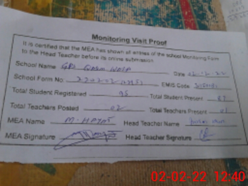 | EMIS Code: 31150081 | Name of School: GPS QASIM WALA | |||