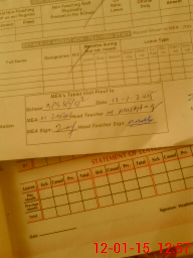 | Attendance Register | Head Teacher | MEA with School | Visit Proof |