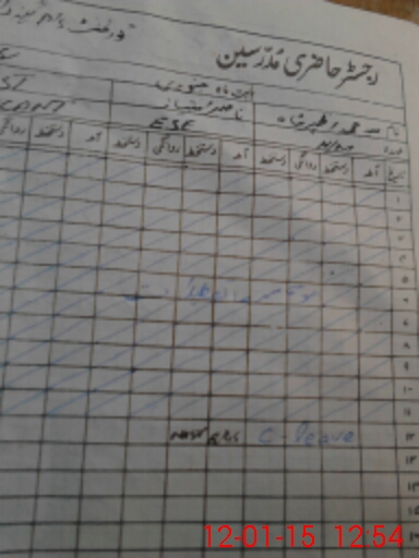 | CNIC | Full Name | Designation | R/C | Absence During Last Calender Month |