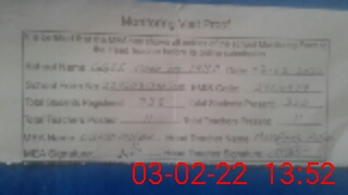 | Certified that this School was Inspected by the Undersigned MEA/DMO Today and the Information Stated Above is as Per Record. | |||||