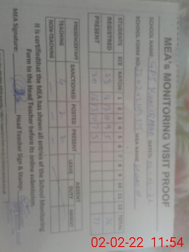 | Monitoring Date: 02-02-2022 | Start Time: 02-02-2022 11:11 AM | End Time: 02-02-2022 11:55 AM | Name of MEA: Kh**** Me**** | |