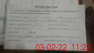 | Total no. of Classrooms: 22 No. of Classrooms Used for Teaching: 16 No. of Classrooms Storing Old Furniture, FTBs, etc: 0Comments if Any: MUCH BETTER STANDARD OF SCHOOL NSB AND FTF RECORD NOT MAINTAINED PROPERLY DUE TO NON AVAILABILITY OF FRESH STATEMENTS COVID SOPS DISPLAYED AND PARTIALLY FOLLOWING BY STAFF AND STUDENTS TEMPERATURE GUN AVAILABLE SANITIZER AVAILABLE |
