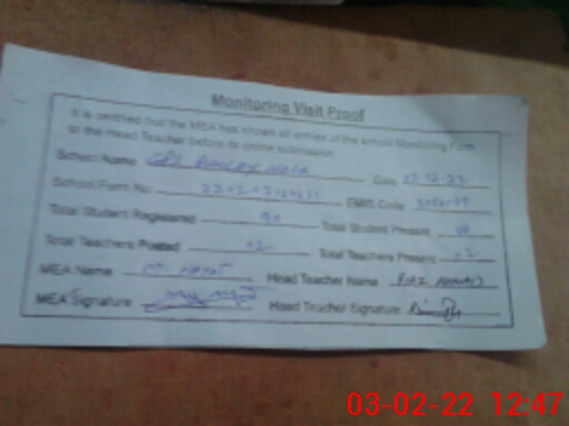 | EMIS Code: 31150049 | Name of School: GPS BHOLEY WALA | |||