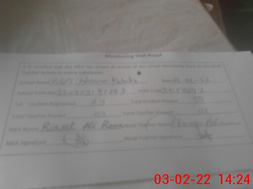 | Certified that this School was Inspected by the Undersigned MEA/DMO Today and the Information Stated Above is as Per Record. | |||||