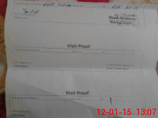 | Attendance Register | Head Teacher | MEA with School | Visit Proof |