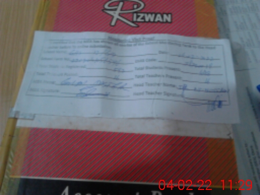 | Attendance Register | Head Teacher | MEA with School | Visit Proof |