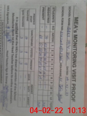 | Monitoring Date: 04-02-2022 | Start Time: 04-02-2022 09:32 AM | End Time: 04-02-2022 10:14 AM | Name of MEA: M.Ta**** Iq**** (S**** | |