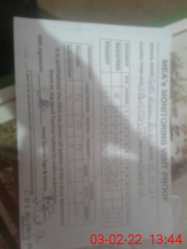 | Certified that this School was Inspected by the Undersigned MEA/DMO Today and the Information Stated Above is as Per Record. | |||||