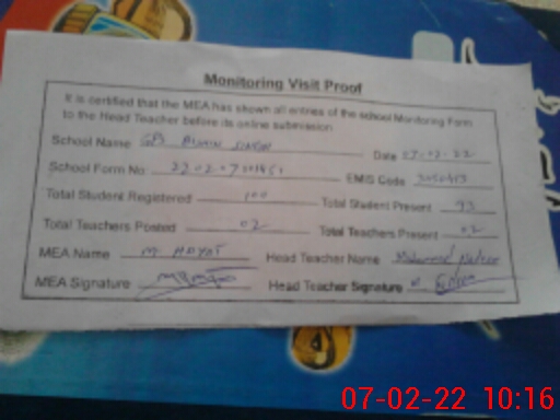 | Certified that this School was Inspected by the Undersigned MEA/DMO Today and the Information Stated Above is as Per Record. | |||||