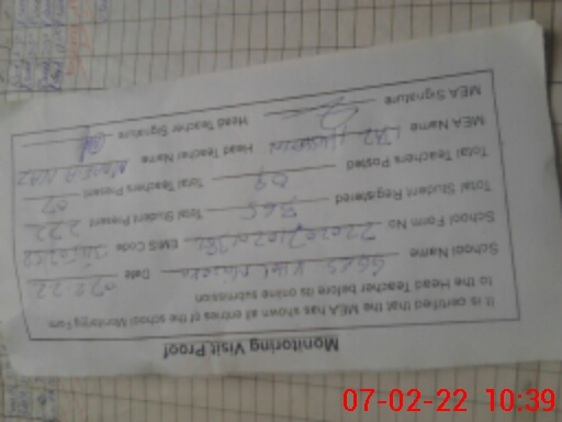 | Certified that this School was Inspected by the Undersigned MEA/DMO Today and the Information Stated Above is as Per Record. | |||||