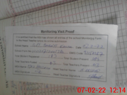 | Certified that this School was Inspected by the Undersigned MEA/DMO Today and the Information Stated Above is as Per Record. | |||||